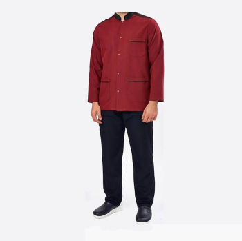 Bordo Hakim Yaka Çıtçıtlı Aşçı Ceketi